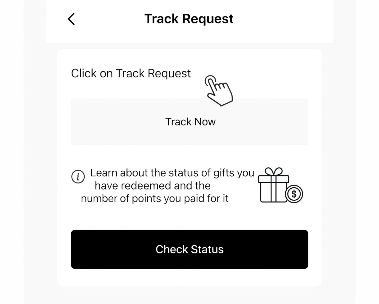 • B: Learn about the status of gifts you have redeemed and the number of points you paid for it.